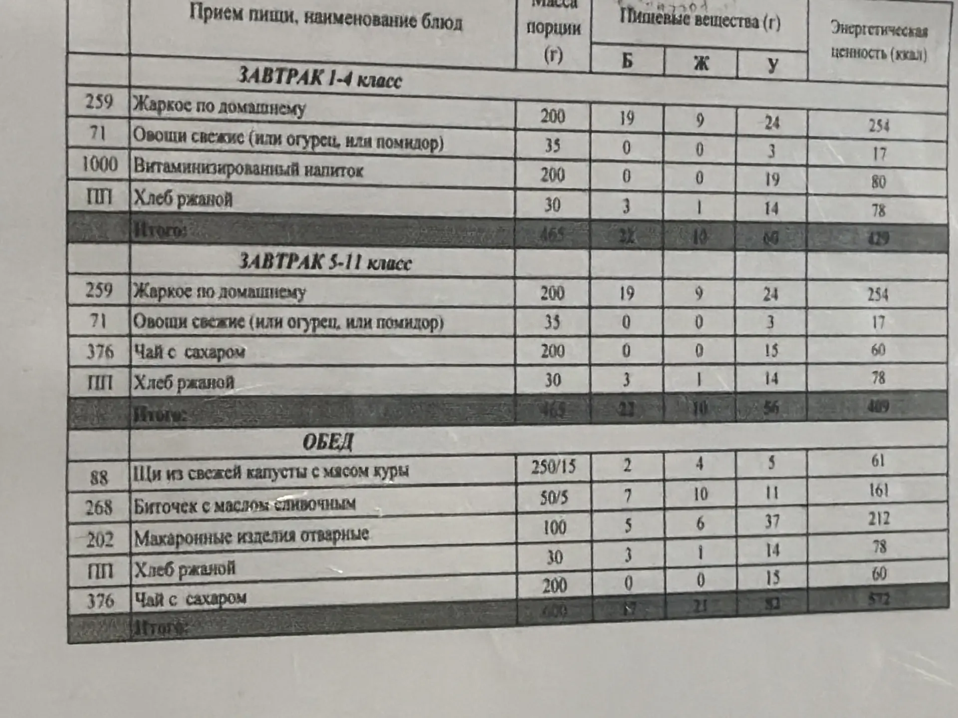 Заведующая столовой сообщила, что меню формируется с учётом пожеланий детей. Ежедневно в рацион входят супы на мясном бульоне, мясные и рыбные блюда, а также салаты из свежих овощей.