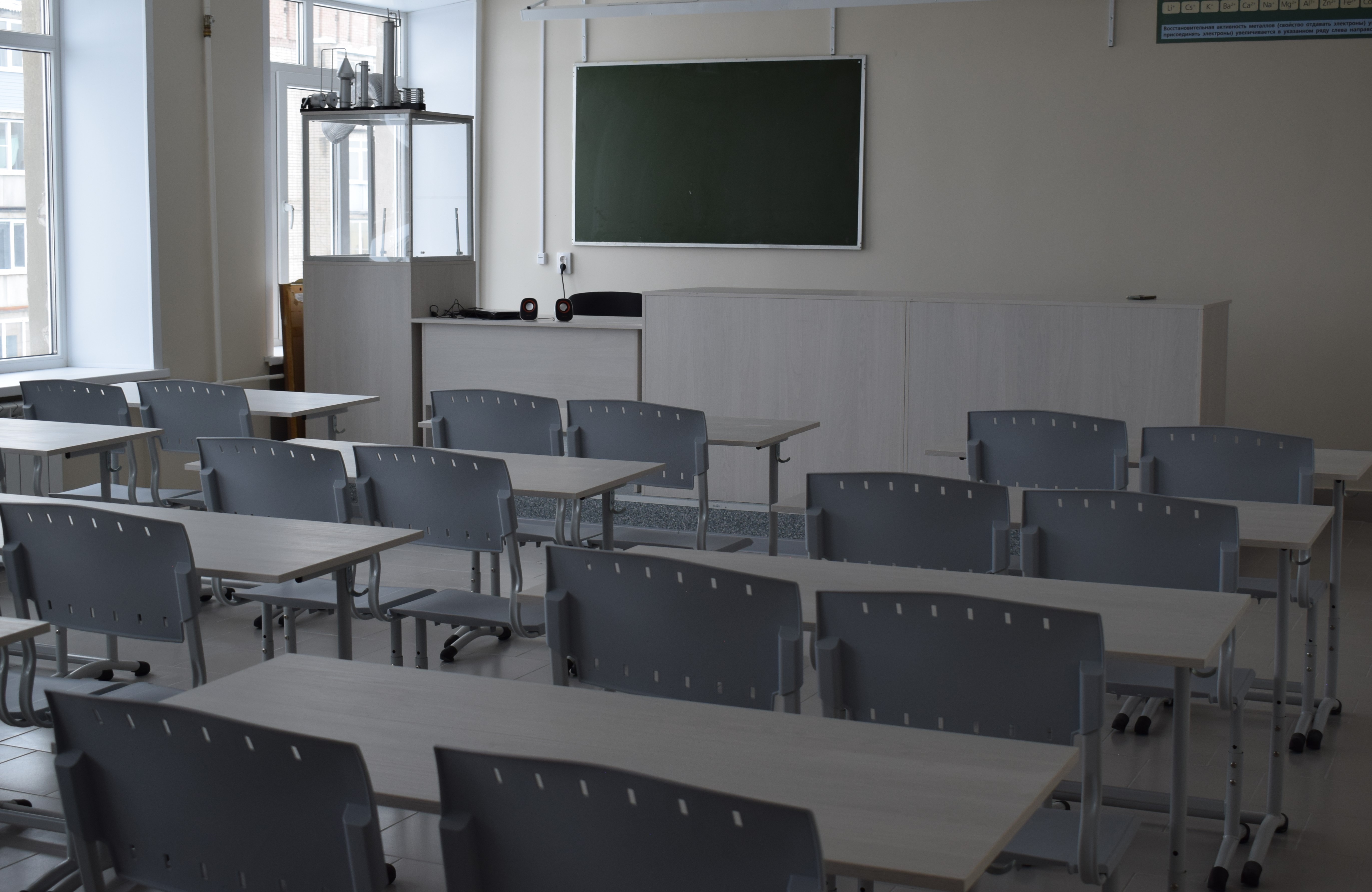 В ходе работ была полностью заменена кровля, инженерные коммуникации и мебель. Учебное заведение также оснастили новым оборудованием, а для отдыха учеников и педагогов организовали комфортные зоны.